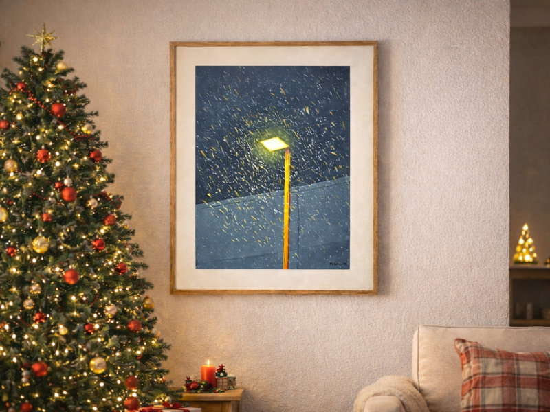Art print based an original gouache painting featuring the first snowfall of the season.